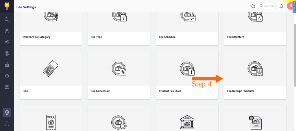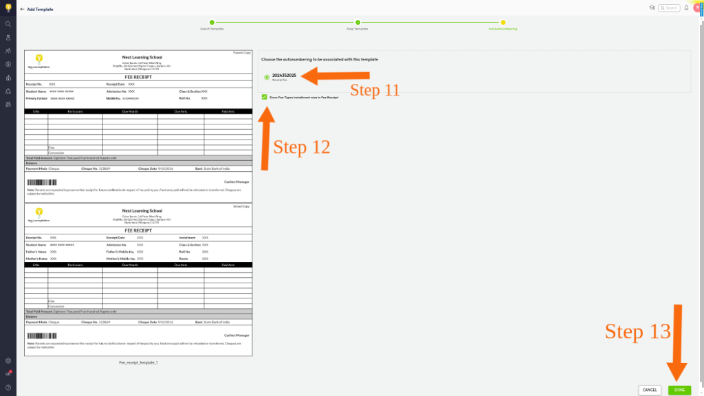 12. If you want to show the fee types installment-wise in the fee receipt, click the rectangular box.