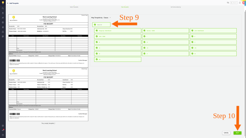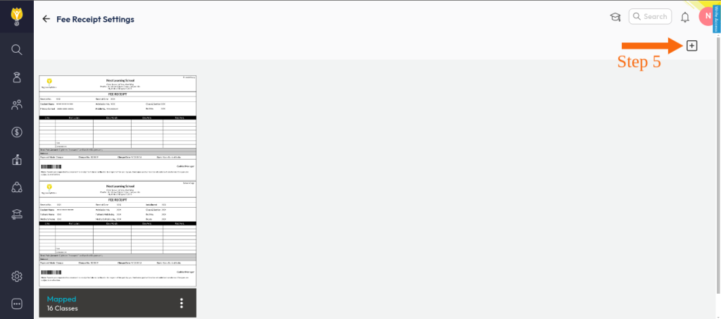 7. Enter the prefix, variable, and suffix according to your preference. The variable you mention here will start from the next number, which will be used in the fee receipt.