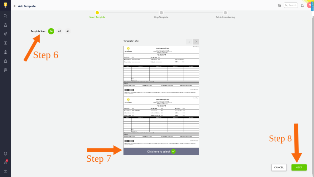 8. For example, if you enter 0, the fee receipt will start from 1.