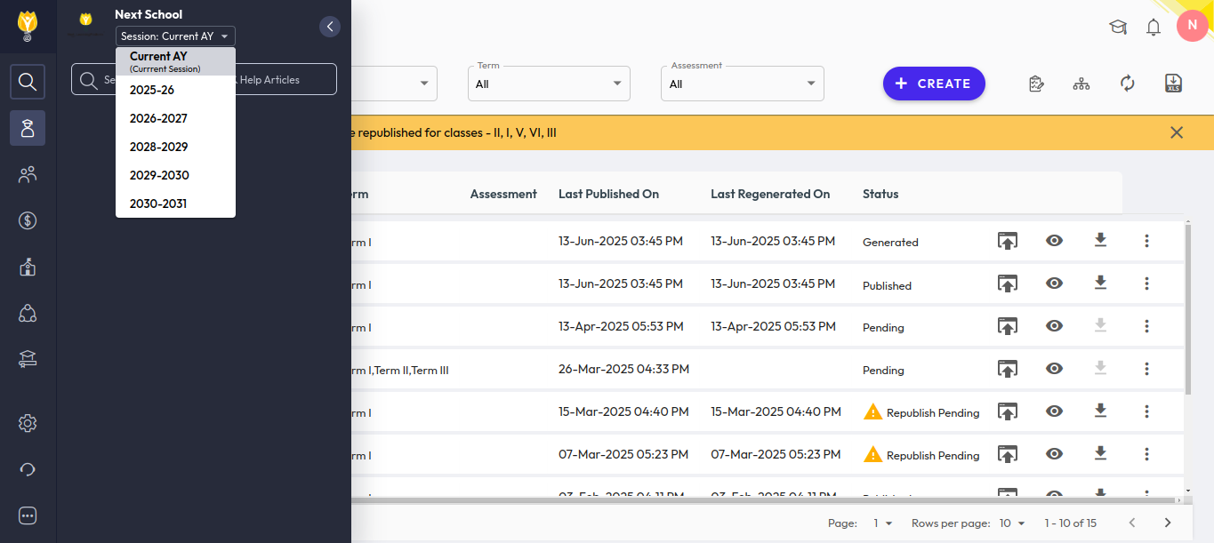 Switch the Academic Session: