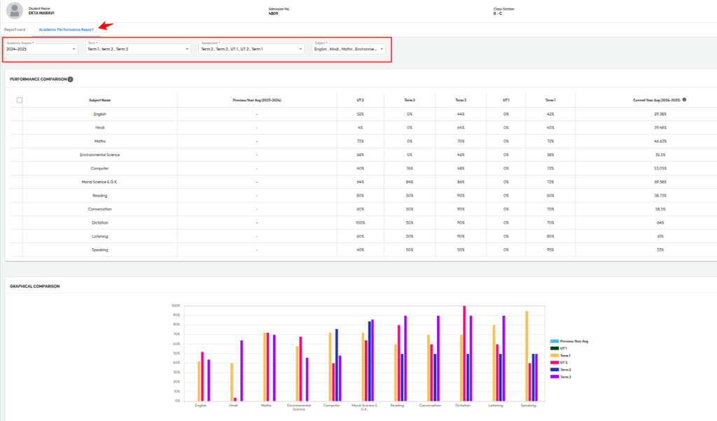 You can view results from earlier academic sessions using either the Academic Performance Report or by Switching Session. Choose the method that best suits your requirement.