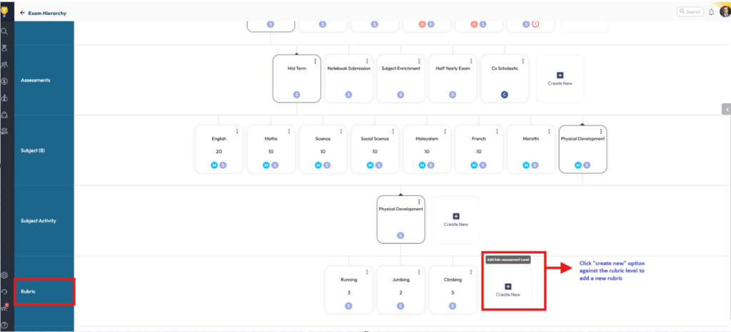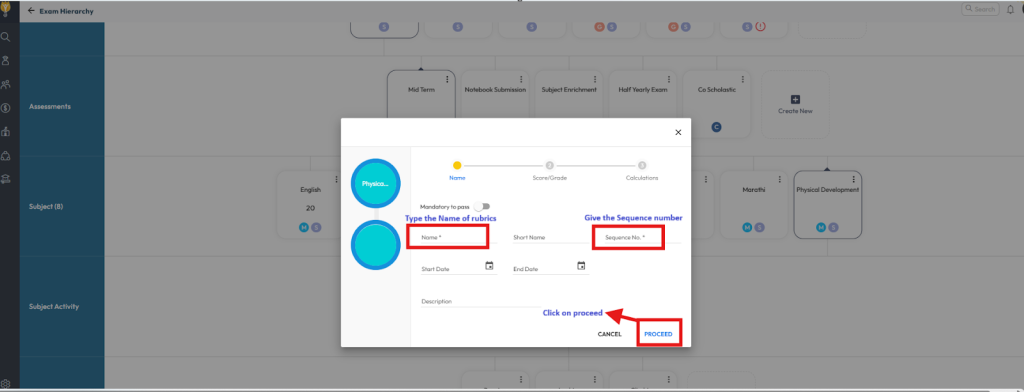 - Click Create New, Enter the Rubric Name and assign a Sequence Number for display order, Click Proceed.