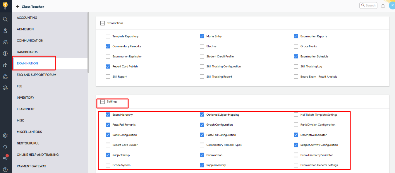 2. Select the specific Role for which you want to grant examination-related permissions.