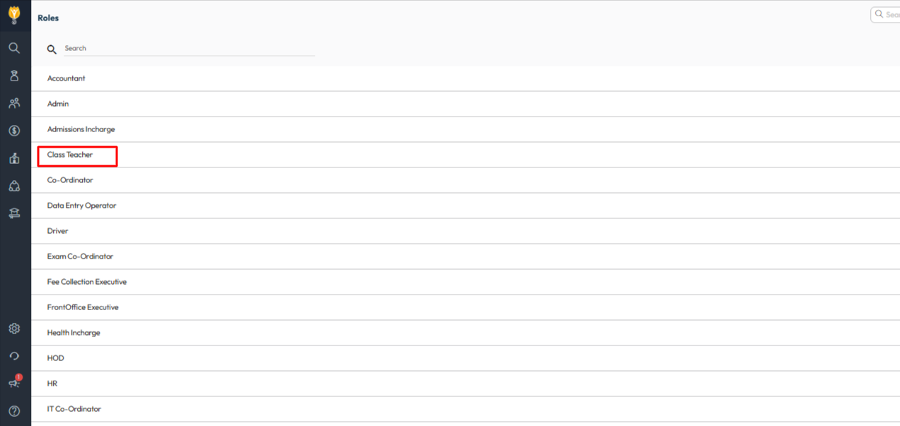1. Navigate to Settings > Administration > School Setup > Roles and Permission.