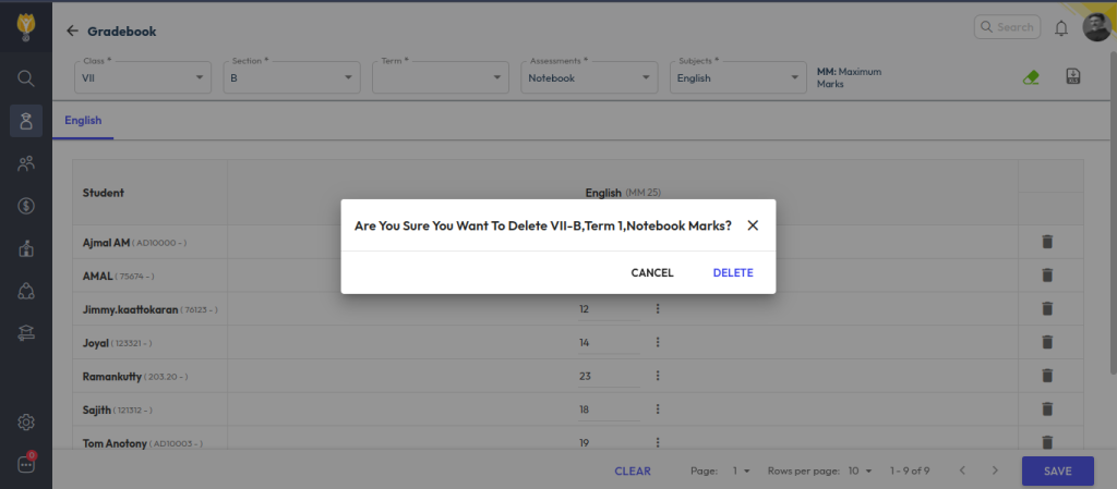 (You will be able to re-upload the same file later.) - Once the marks are safely downloaded, delete the marks using delete icon on this page.