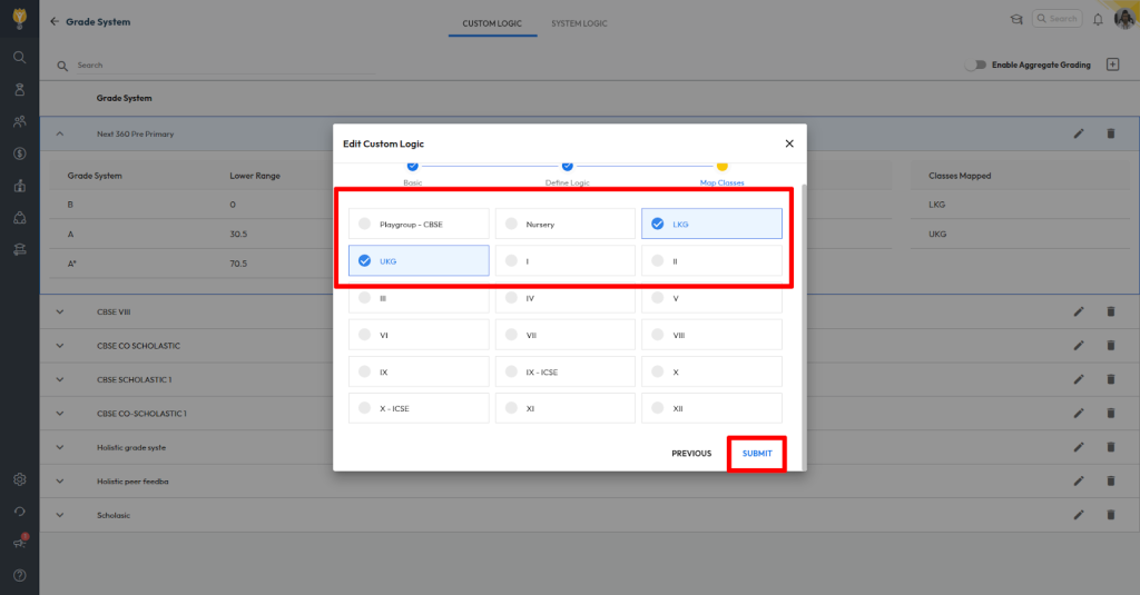 Your custom grading scale will now be available to use during the exam structure configuration via exam hierarchy.