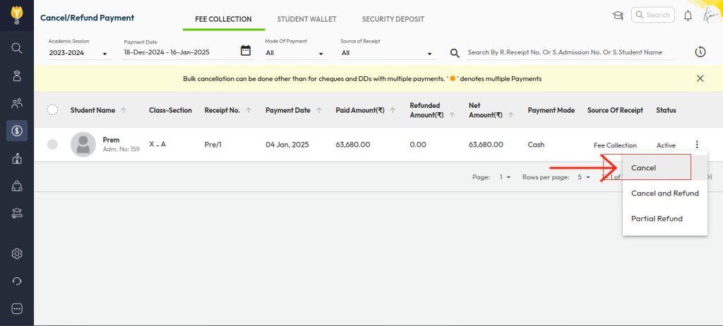 • After updating or recreating the fee setup, you can proceed with fee collection again for the class.