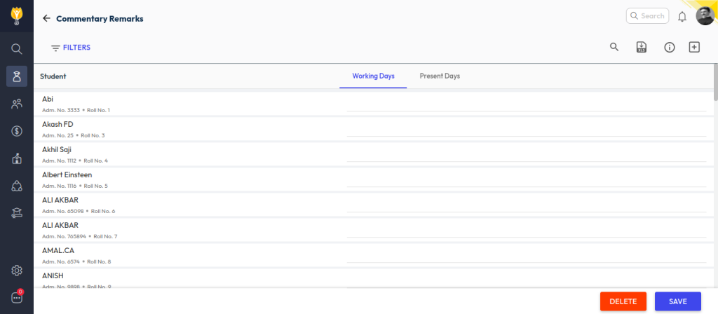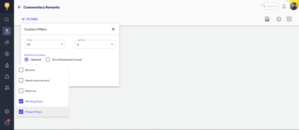 - From the Remark Type dropdown, select Working Days or Present Days.