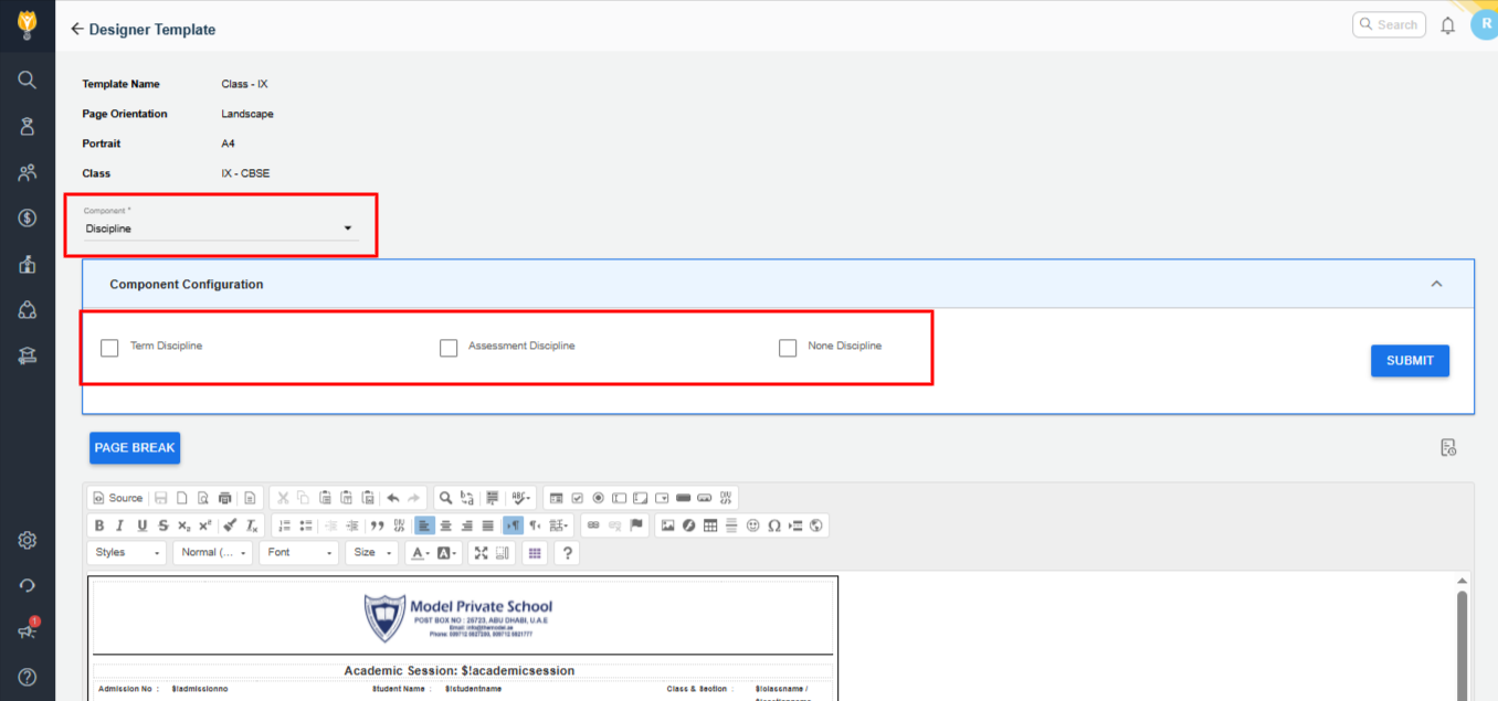 Tip: To ensure remarks appear correctly, verify that the appropriate placeholders (keys) are added and positioned properly in the report card template.