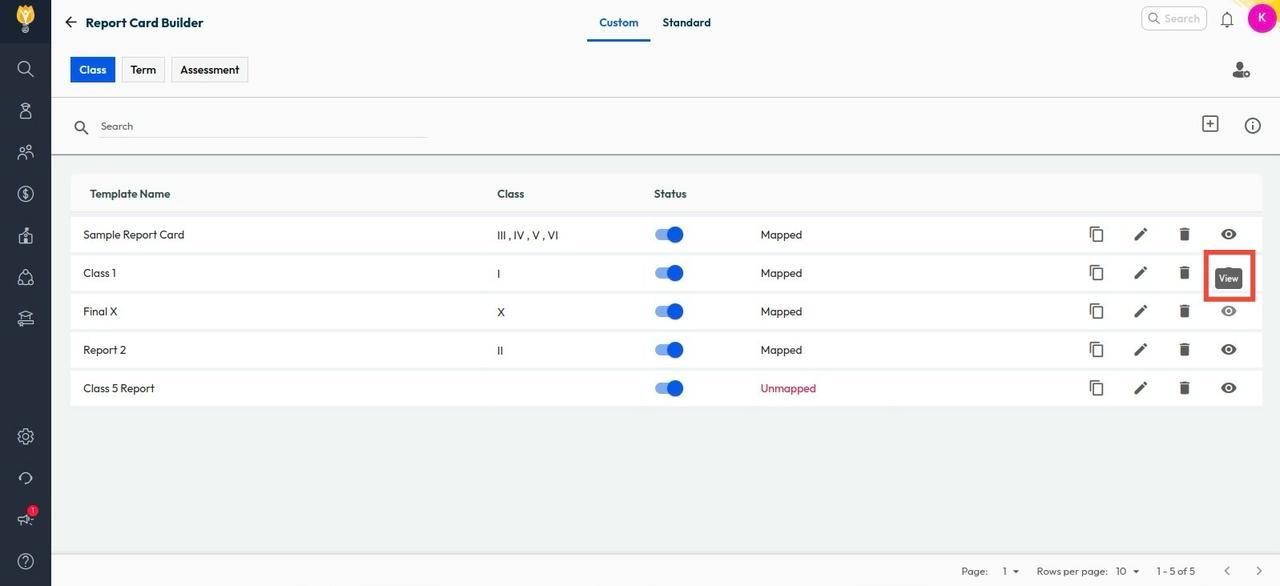 - Now, the roll numbers will be visible on the report card if they have been entered for the students.