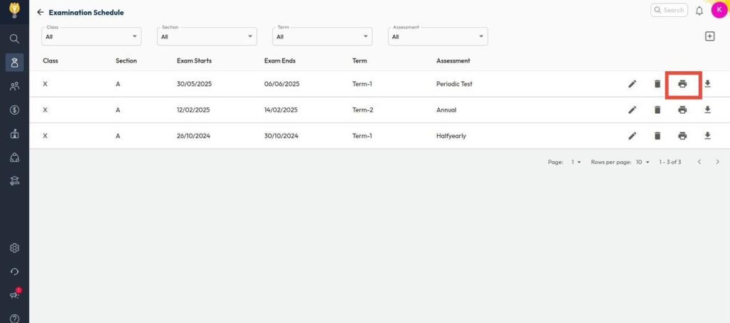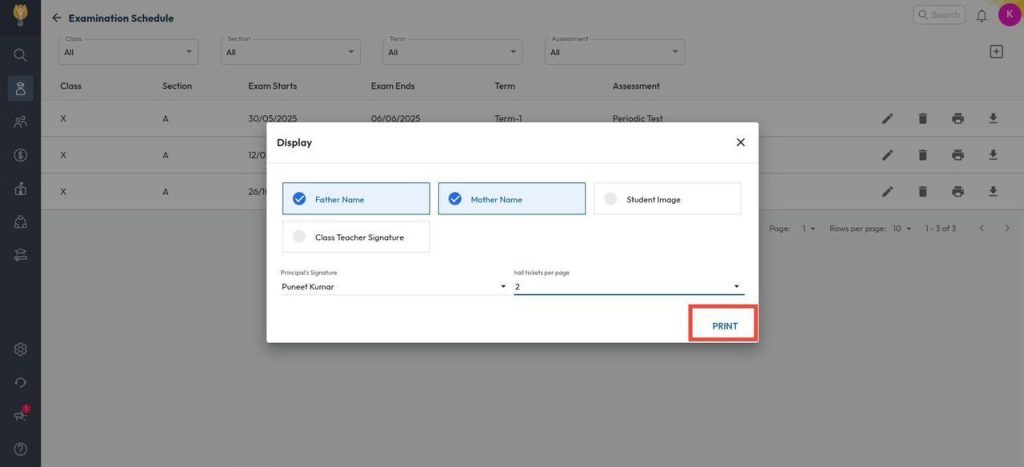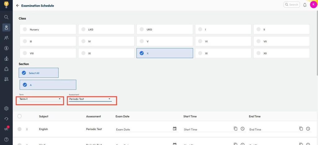 - Select the Class and Section, then choose the Term, followed by the Periodic Test assessment.