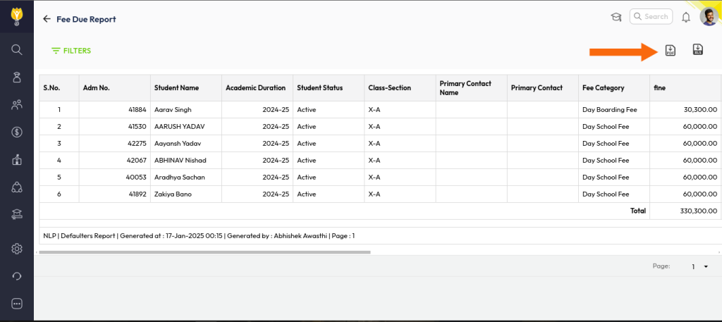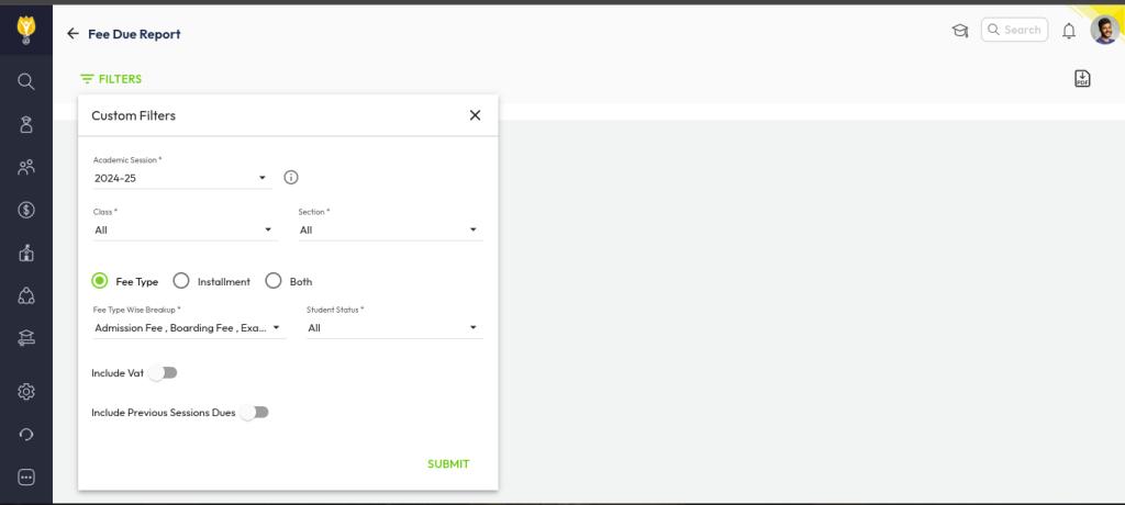 - Click on Fee Due Report.
