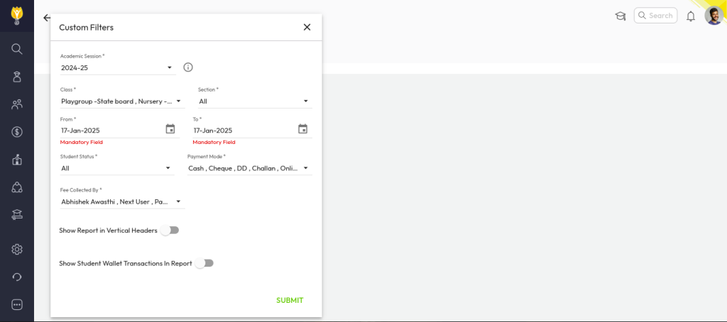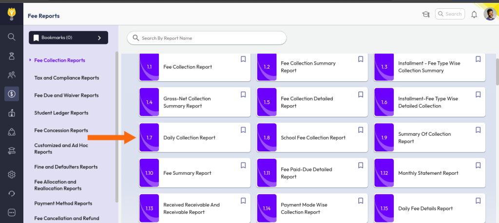 - Go to Fee Collection Reports.