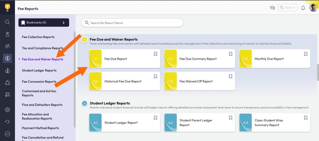 Step 3: From the list, click on Fee Reports.