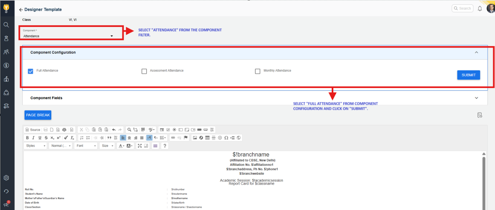 You can display overall attendance details directly from the Report Card Builder. Follow the steps below: