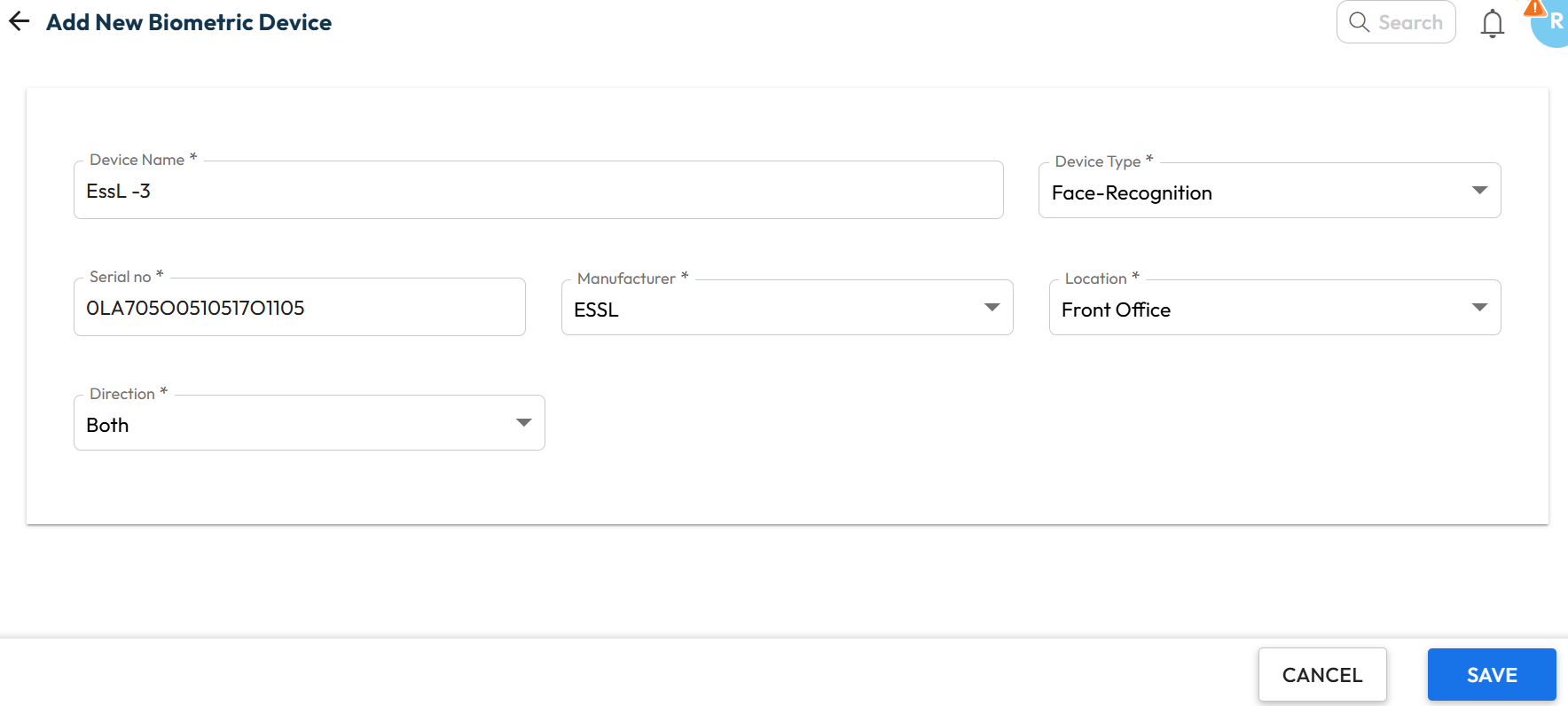 - Navigate to Settings > Staff > Attendance > Biometric Devices.