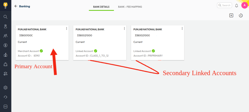 Note : To link the multiple accounts for the online payments, you have to raise a ticket to our support team after that it will be visible as mentioned in the above image.