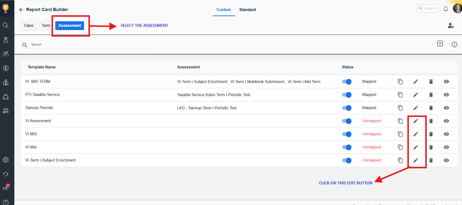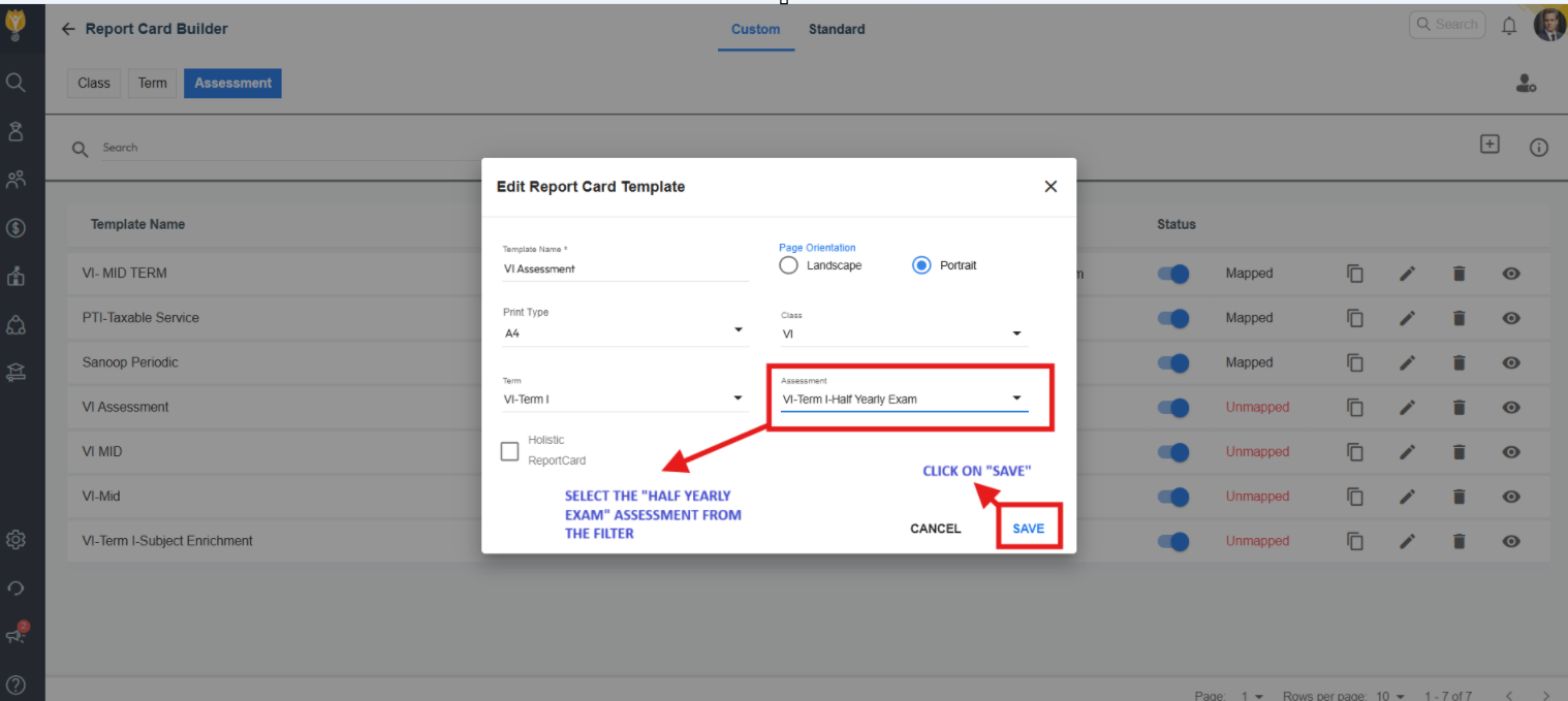 - Navigate to : Settings > Student > Examination > Report Card Builder > Assessment.