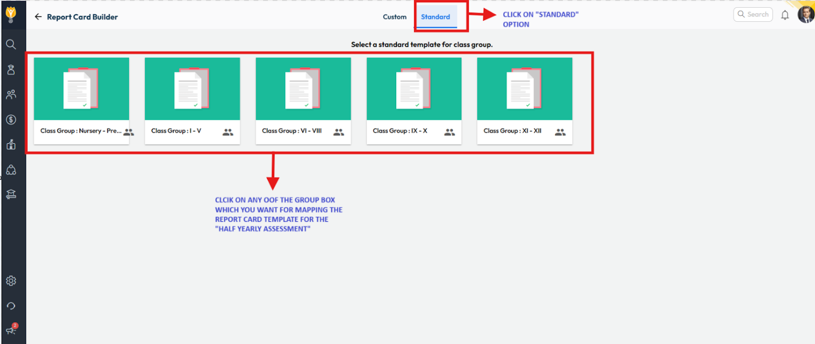 - Navigate to : Settings > Student > Examination > Report Card Builder > Standard