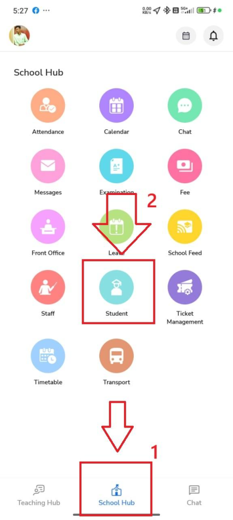 - Open the NextOS App and go to School Hub.