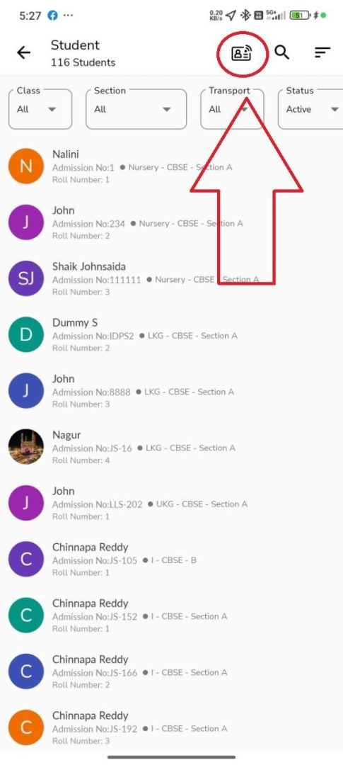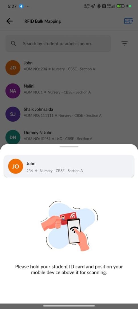 - Select the required student and map the NFC/RFID card to their profile.