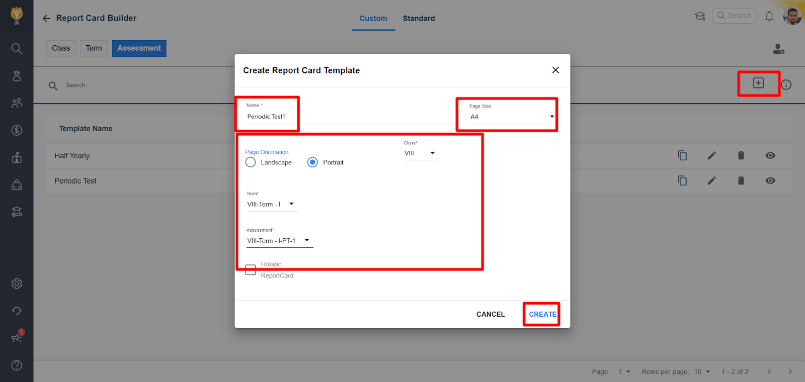 You can design & map separate templates for Periodic Tests, Half-Yearly exams, and other assessments using the Report Card Builder.