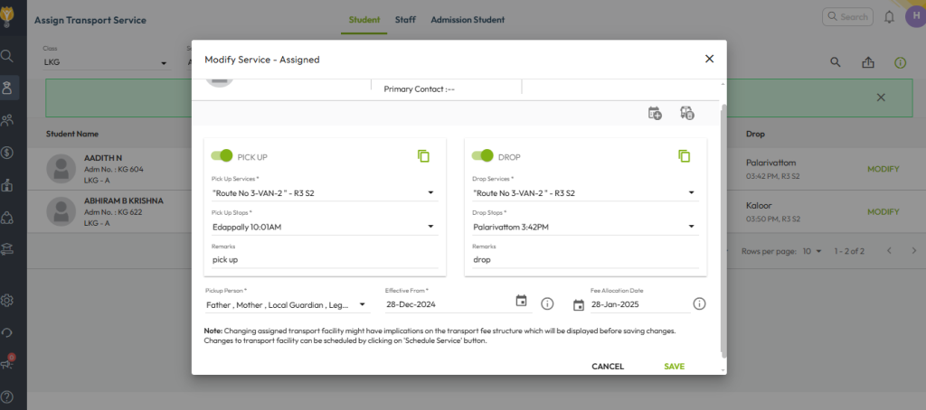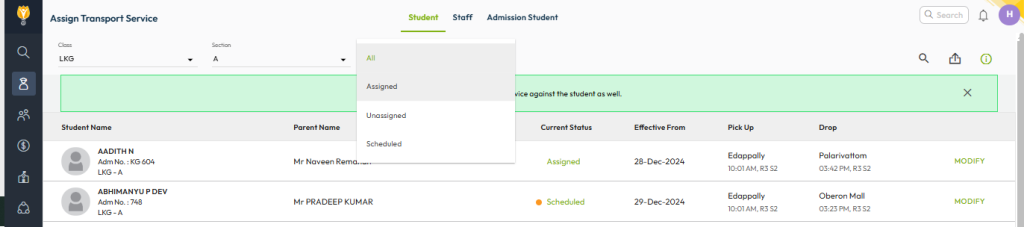 - Navigate to Student > Student Transport > Assign Student Transport.
