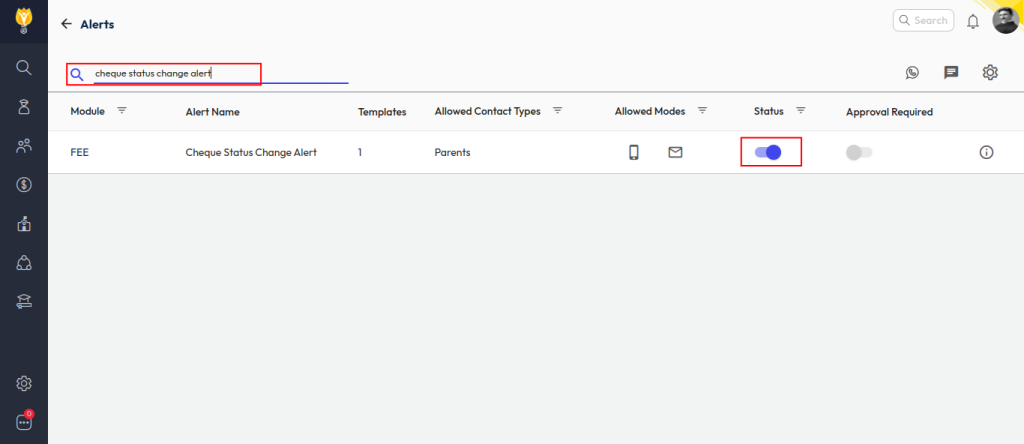 We can notify parents using the cheque status change alert, follow the steps below to notify :
