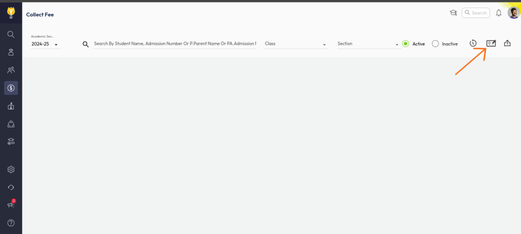 1. Click on Finance > Fee > Collect Fee (Transactional side).