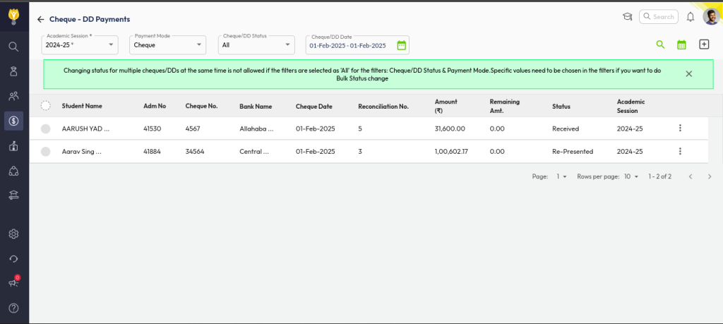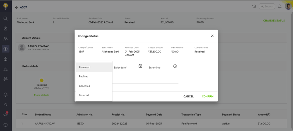 After completing the above steps, parents will be notified about the cheque bounce related to the school fee.