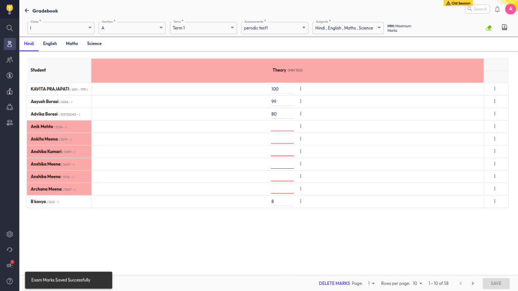 - Switch to the previous academic session.