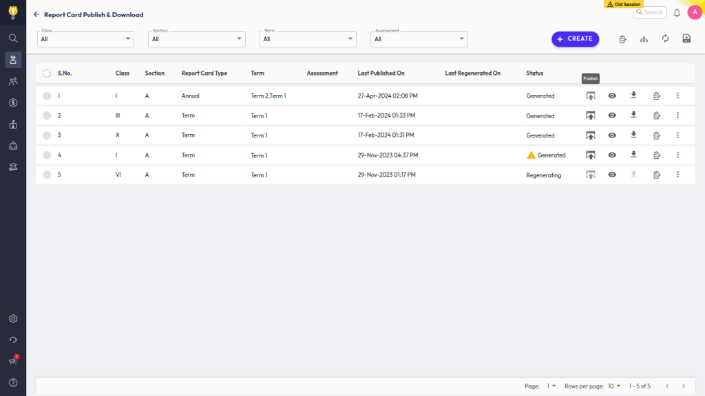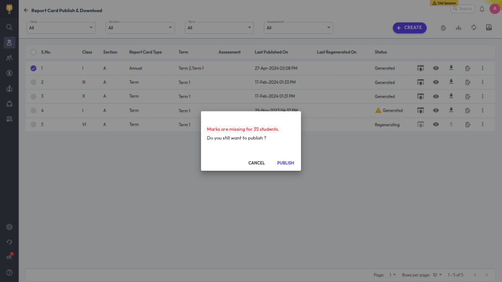 - Go to Student > Examination > Report Card Publish.