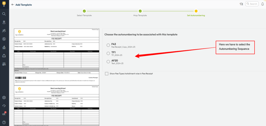 Configure Fee Receipt Template