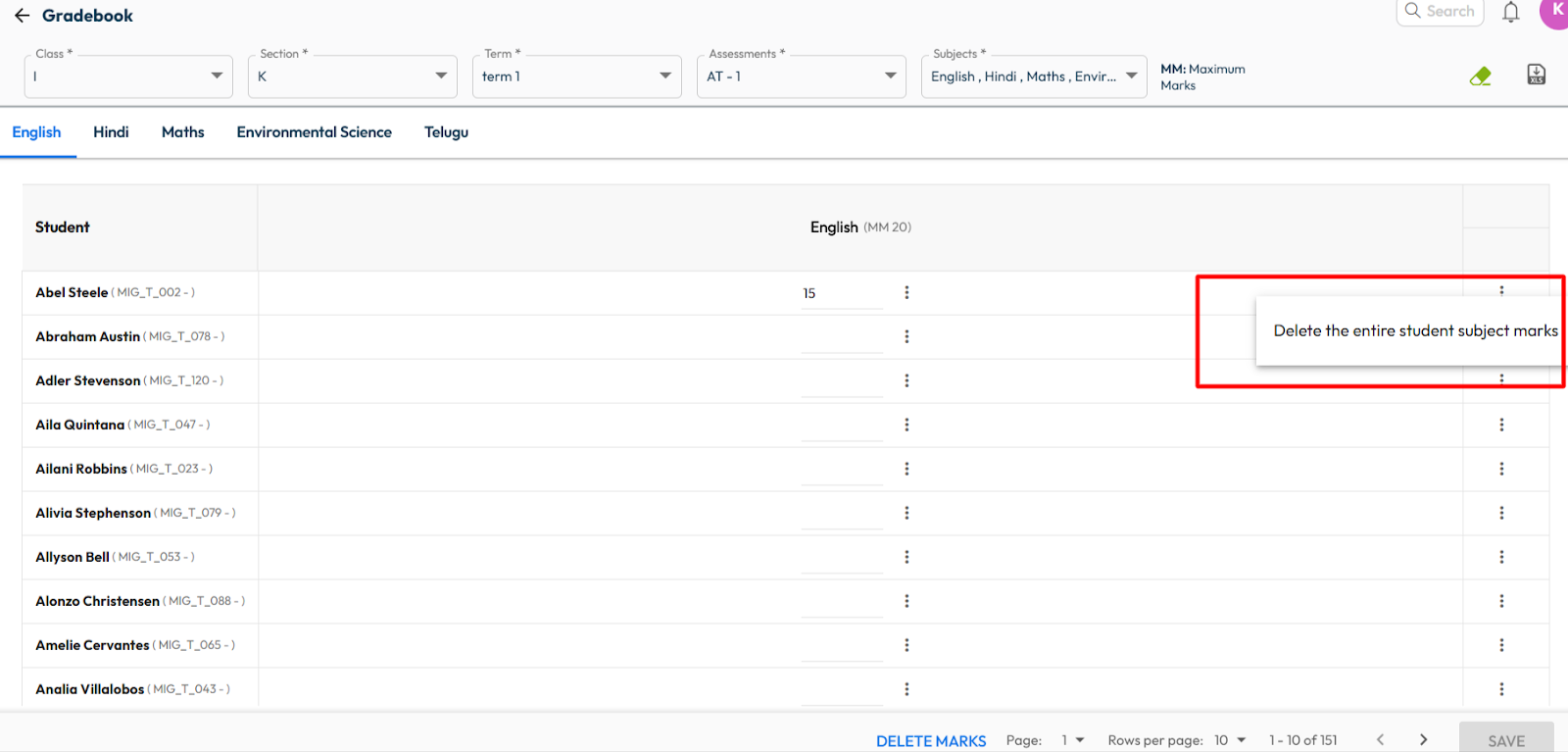 If marks have already been entered for an optional subject, you must delete the marks first before unmapping the subject.