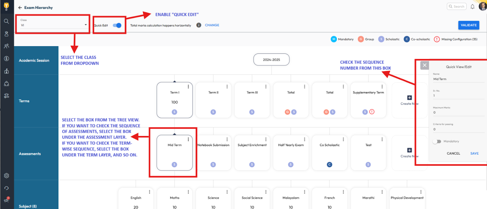- Ensure that the sequence of Term, Assessment, Subject, and Activity/Rubrics is correctly arranged.