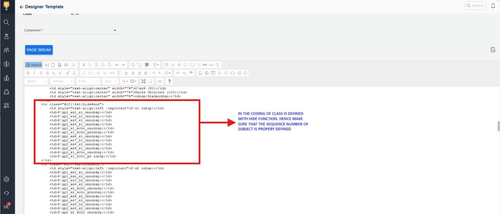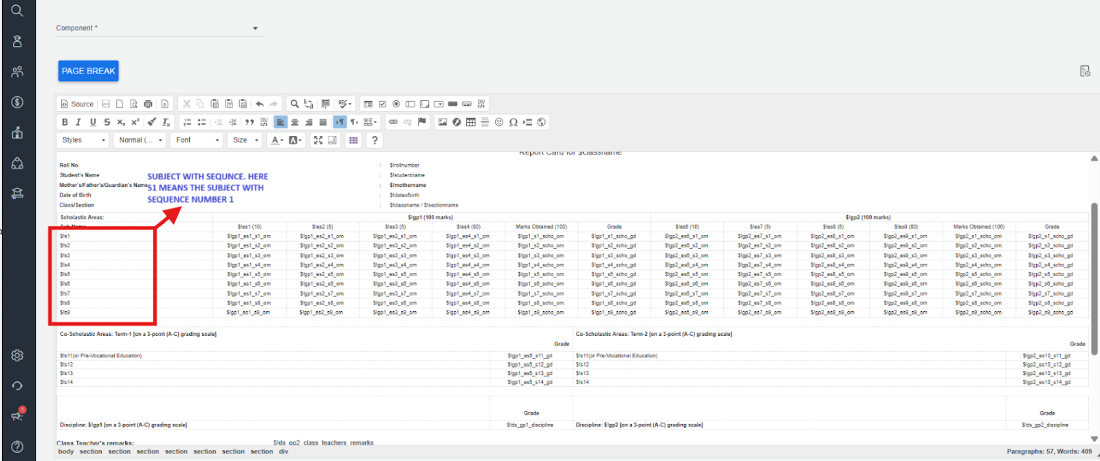 Example: If your report card design uses the subject column labelled as “S1,” it refers to the subject assigned with sequence number 1 in the Examination Hierarchy.