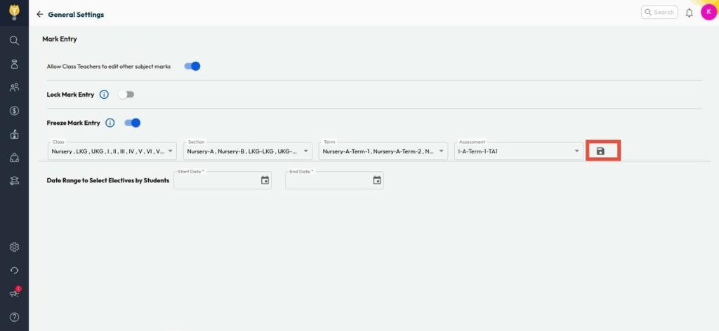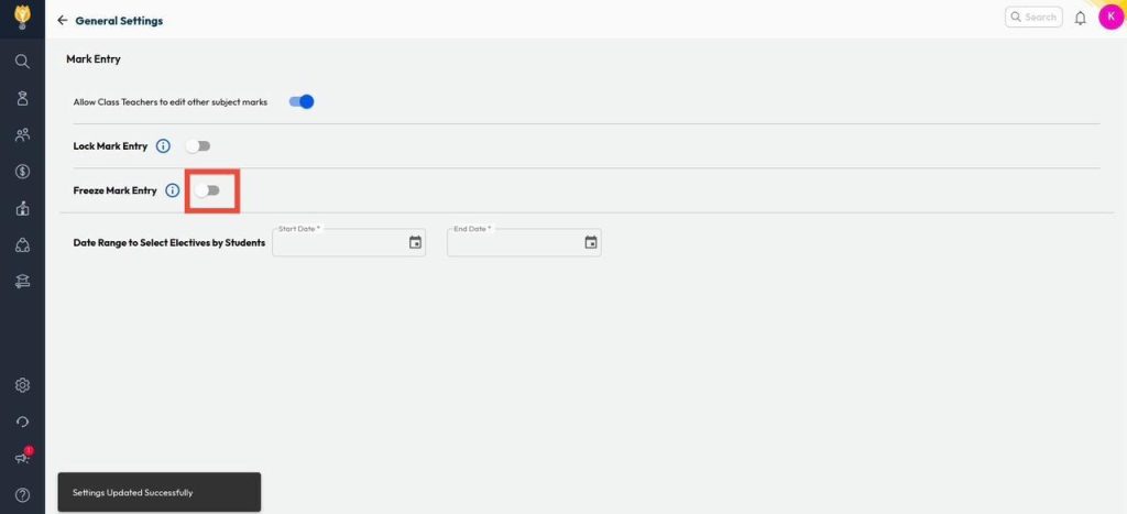 - Turn on the toggle next to ‘Freeze Mark Entry‘.