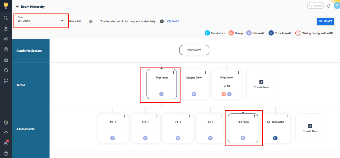 - Review the assessment components (PT1, Notebook, Half Yearly, etc.)