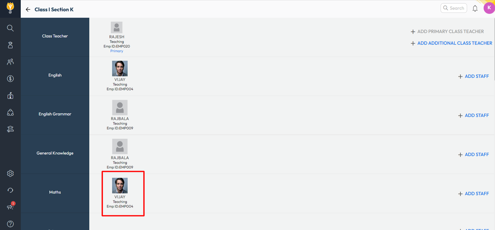 4. The subject teacher will be removed, and the changes will be auto-saved.
