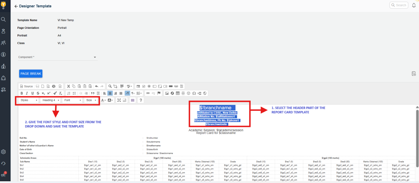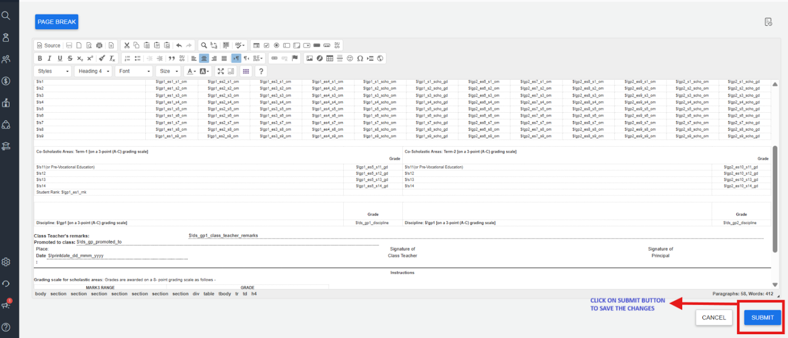 Editing a Report Card Template should only be done if you are familiar with the Visual/HTML Editor. Incorrect modifications may break the layout or disrupt data mapping.