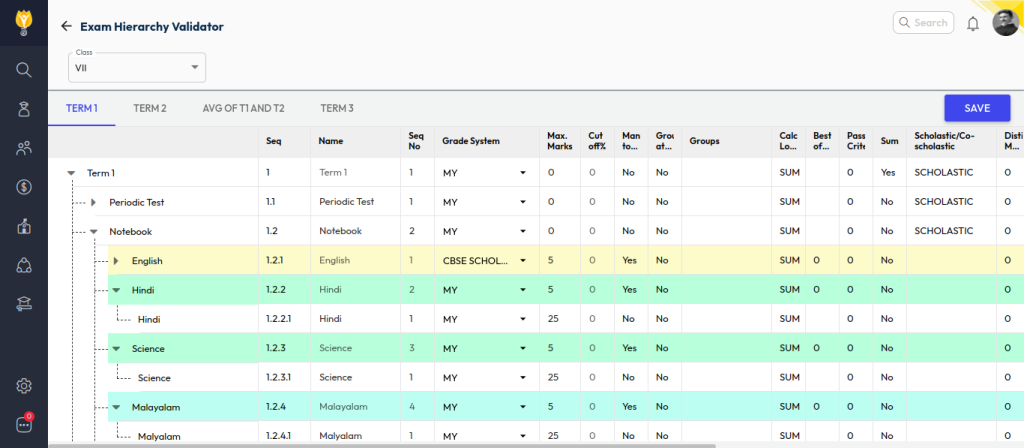 The Exam Hierarchy Validator allows you to review and validate the complete exam structure before entering marks.