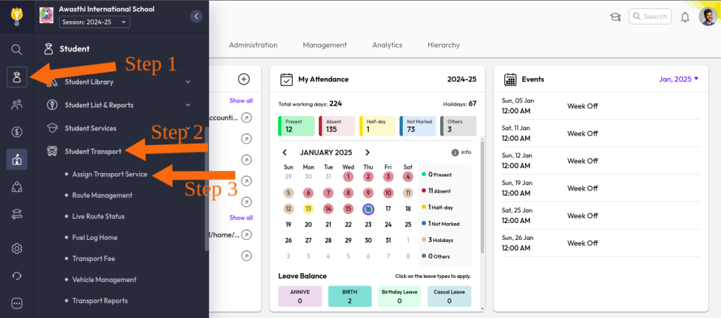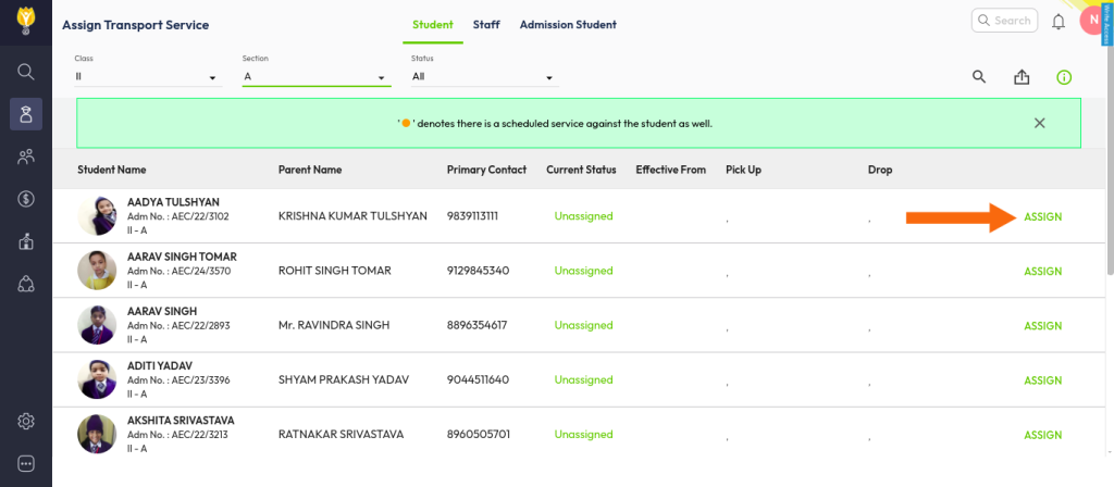 After completing these steps, the transport fee will be successfully assigned to the selected student.