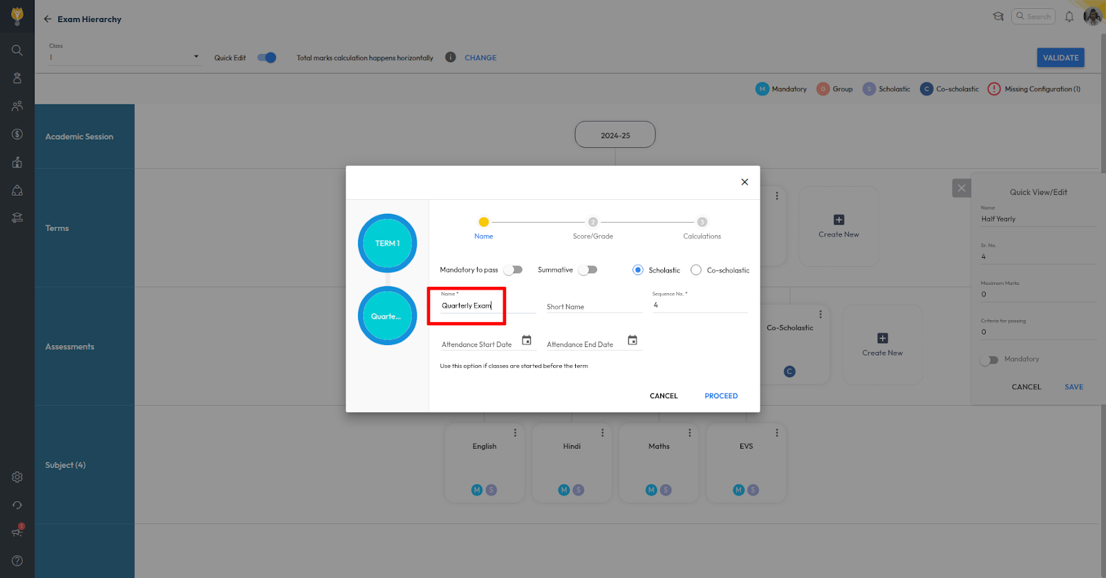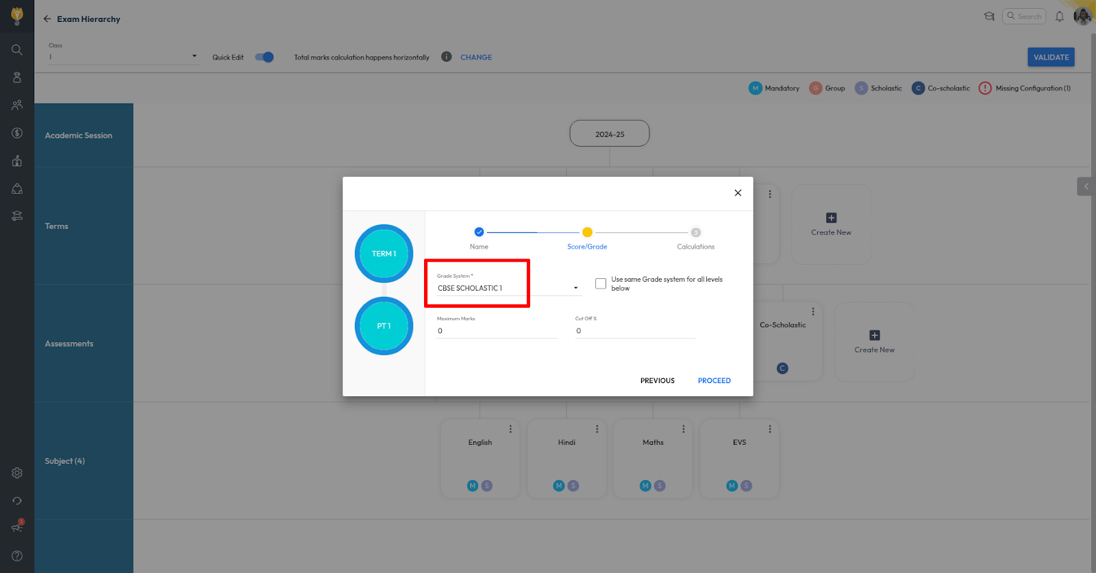 Follow the steps below to configure the complete Exam Hierarchy for a periodic test:
