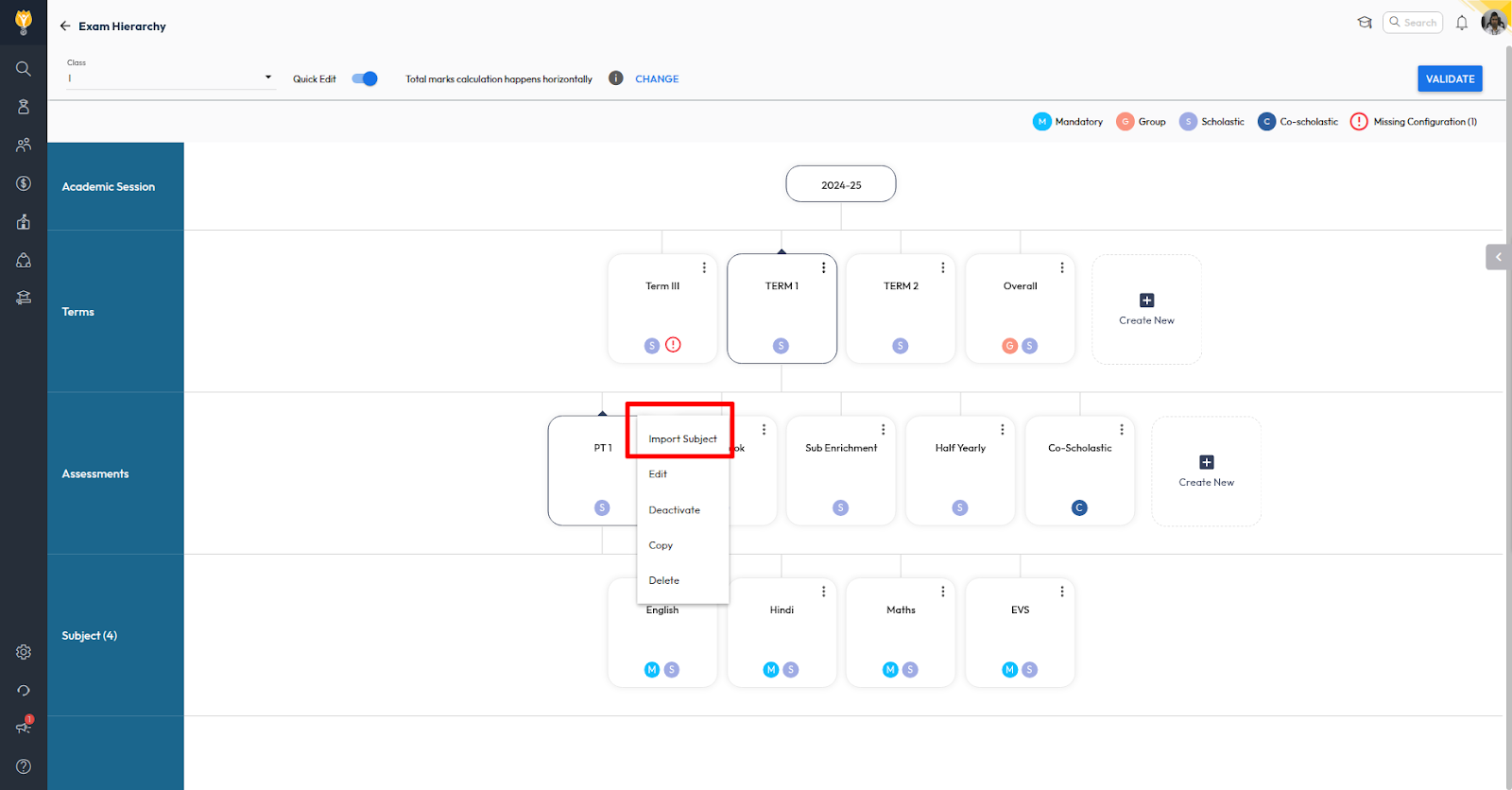 Tip : You need to define the subject activities to open the marks/grade entry.