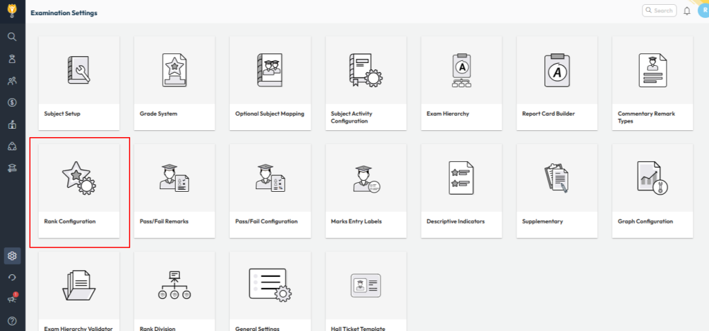 - Navigate to Settings > Student > Examination > Rank Configuration.