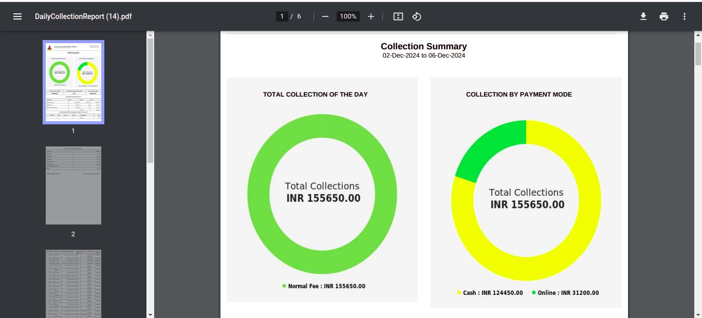 Daily Collection Report is one of the important reports in fee report , we can fetch the details in PDF & Excel format both.