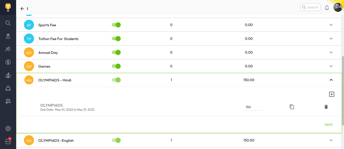 - Go to Settings > Finance > Fee > Fee Structure.