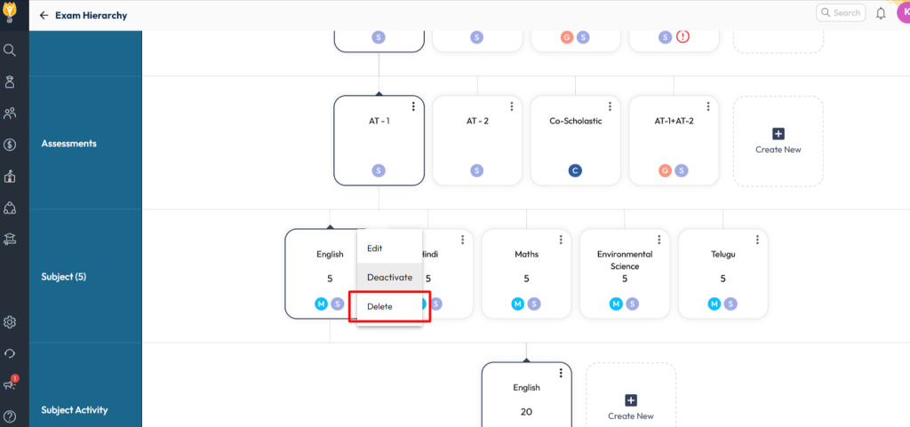 Step 2: Delete Subject from Exam Hierarchy