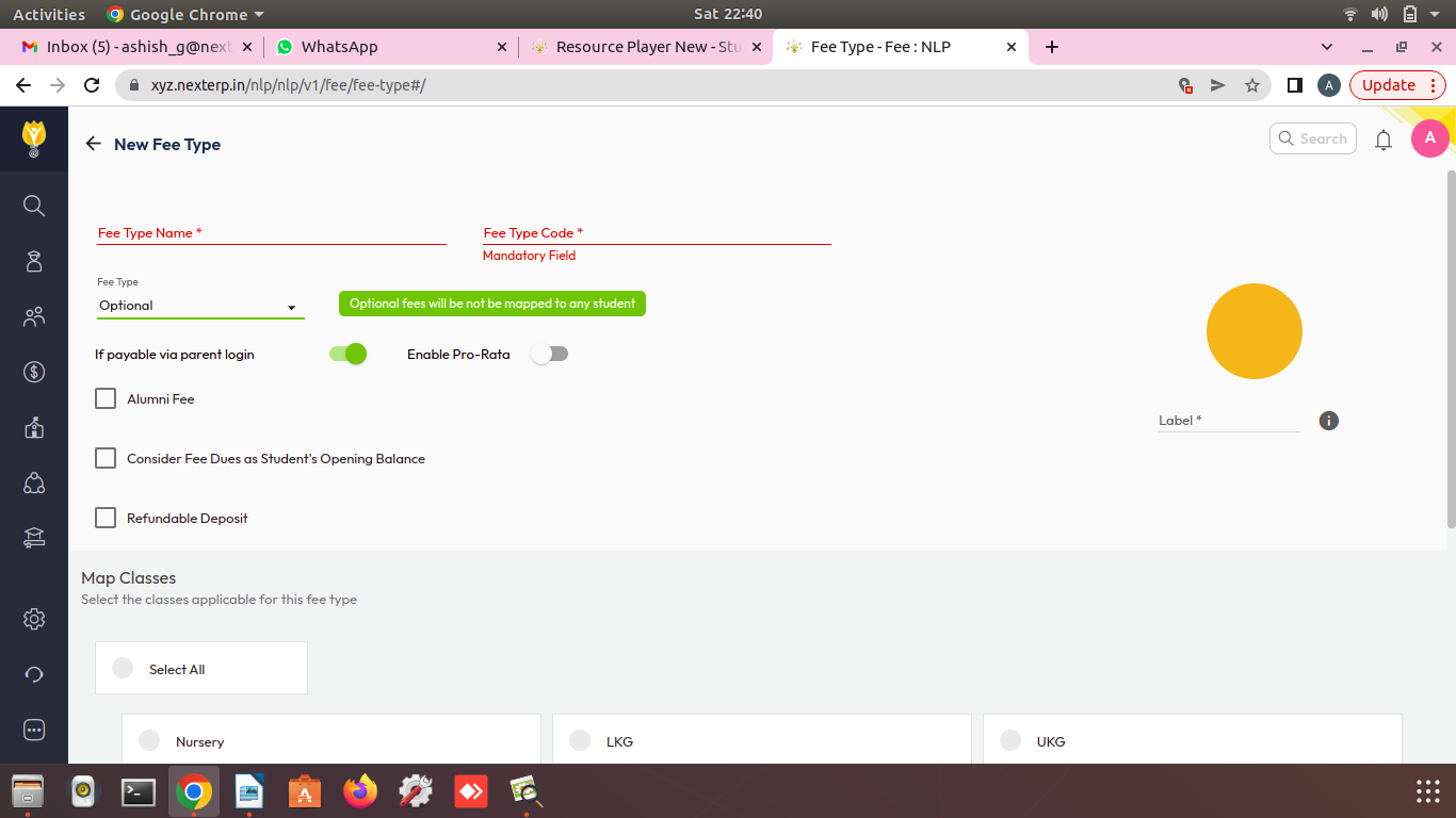 If you mark the fee type as Optional, the created fee type will only be applicable to those students who are mapped to that optional fee type.