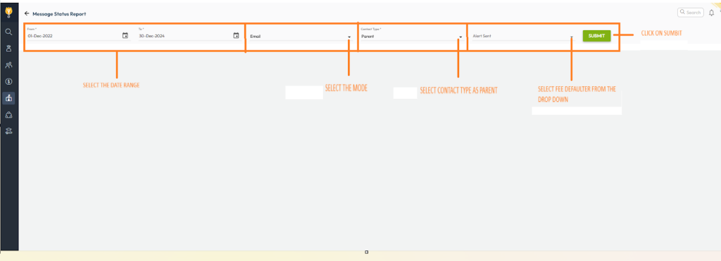 You can verify the delivery status of fee defaulter alerts from the Message Status Report.